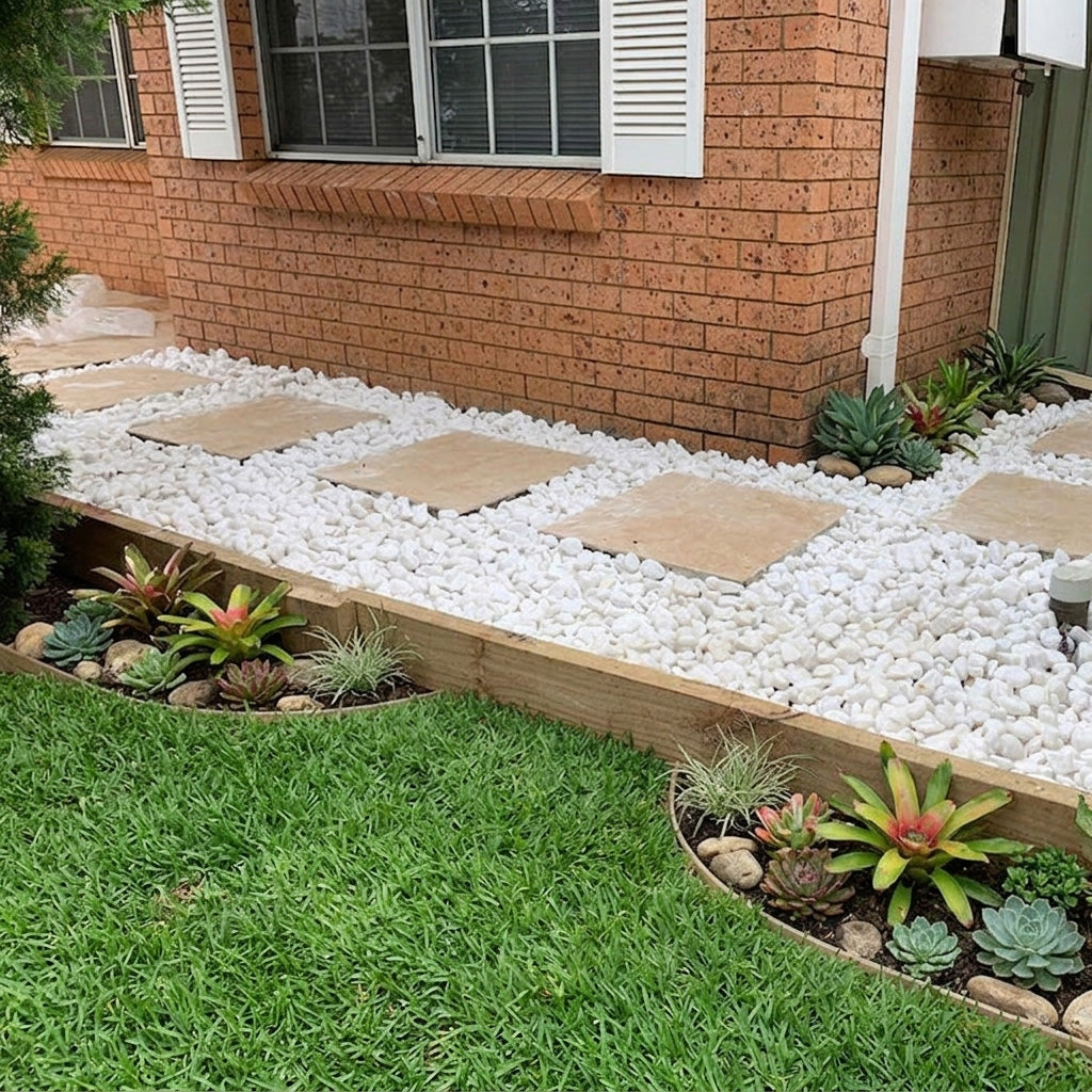 Pebbles and stones are a natural product that will provide a fabulous texture and finish to your landscaping. Perfect for those hard to pave areas that need to be tidied up.